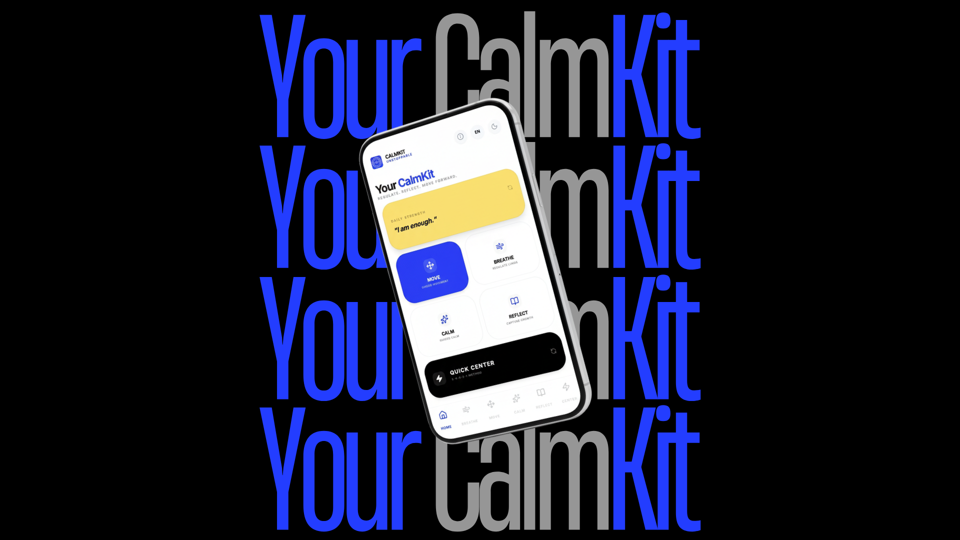 HMC's Your CalmKit — now available in early access — is designed to support stress relief from every angle. Whether you need to go for a walk, try a breathing exercise, or unwind with a guided meditation, Your CalmKit has a tool for it. Features include MOVE (activity tracking), BREATHE (guided breathing), CALM (meditation), REFLECT (journaling), and CENTER (grounding exercises). It's a full stress management toolkit in one place.